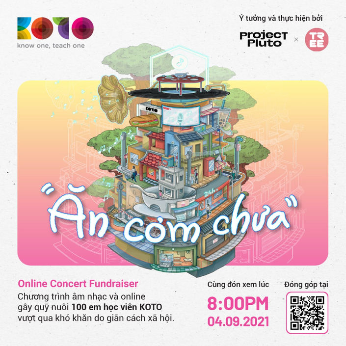 Collaborated with Tree Studios and KOTO team, Project Pluto created a fundraising concert called “Ăn cơm chưa?” In 3 weeks, we developed the concept for the concert, came up with the key visual elements for the event, and strategised and helped execute the event marketing on social media.